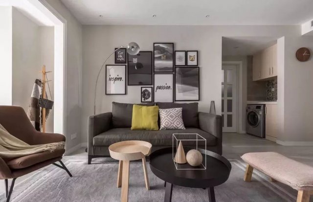 客厅还不错,整体现代简约风,大众比较能接受的样式,看起来还挺温馨的,有舒适的沙发、温馨的照片墙。